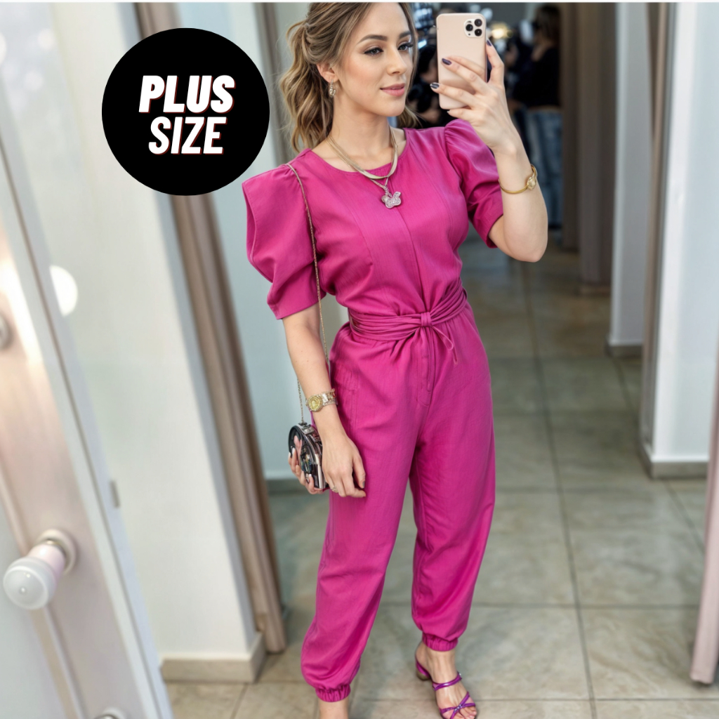 Macacão Feminino Longo Plus Size Manga Bufante Princesa Com Cinto PROMOÇÃO