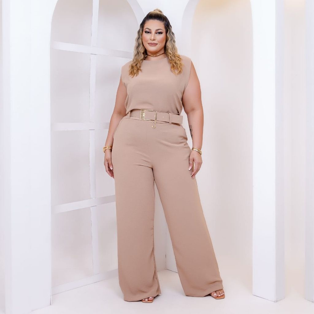 Macacão Longo Social Plus Size Moda Evangélica Com Forro e Cinto