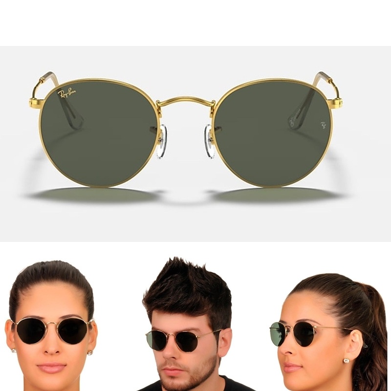 Óculos De Sol Ray Ban Round Redondo Clássico Modelo Referência Modelo Preto Marrom Tradicional Degrade Feminino Masculino Proteção Uv400 Moda Fashion Retro Vintage Unissex
