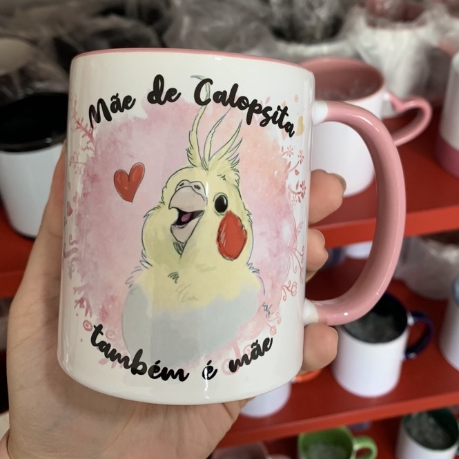 Caneca Xícara Personalizada Divertida Mãe Pai de Calopsita também é mãe Pai