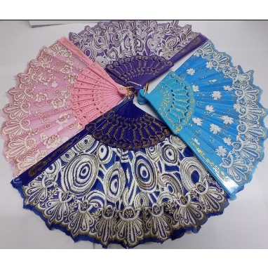 Nova dança em estilo chinês/espanhol, festa de casamento, renda e seda dobrável, portátil, leque de flor para presente e venda por atacado, 2021