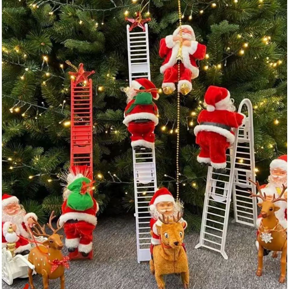 Boneco Papai Noel Enfeite Natal Sobe e desce Escada Arvore Natalino toca música