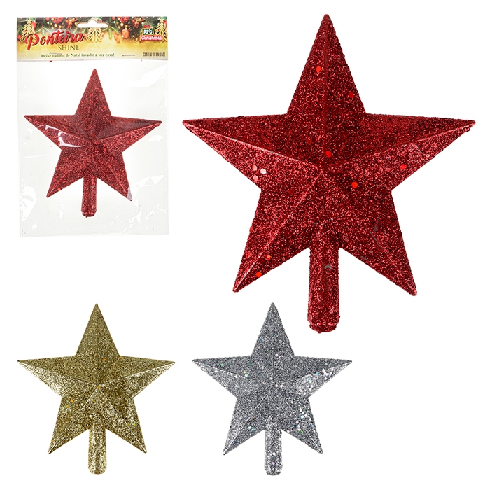 ESTRELA PONTEIRA P/ARVORE DE NATAL COM GLITER SHINE ENFEITE DECORAÇÃO