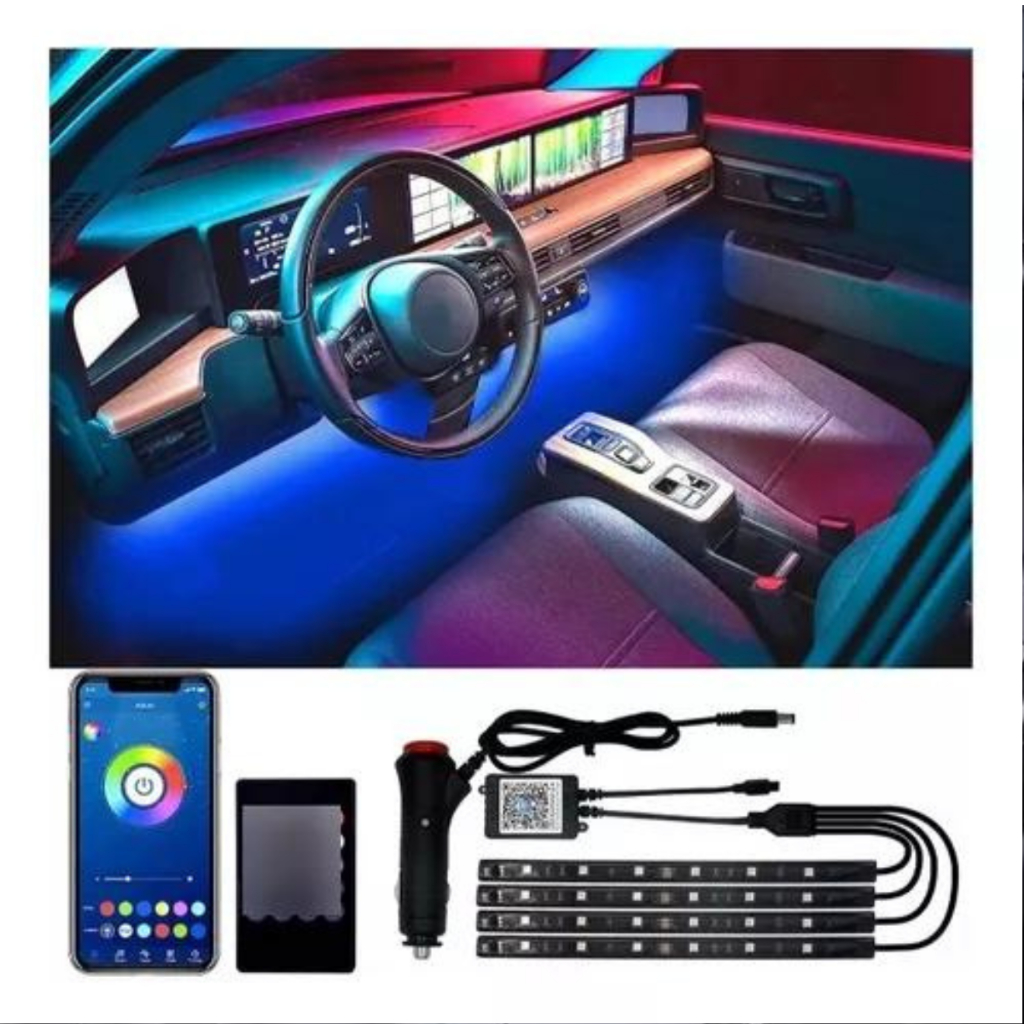 Led Interno Rgb Automotivo Tuning Neon 7 Cores Com Aplicativo para celular APP QR CODE (android e ios)