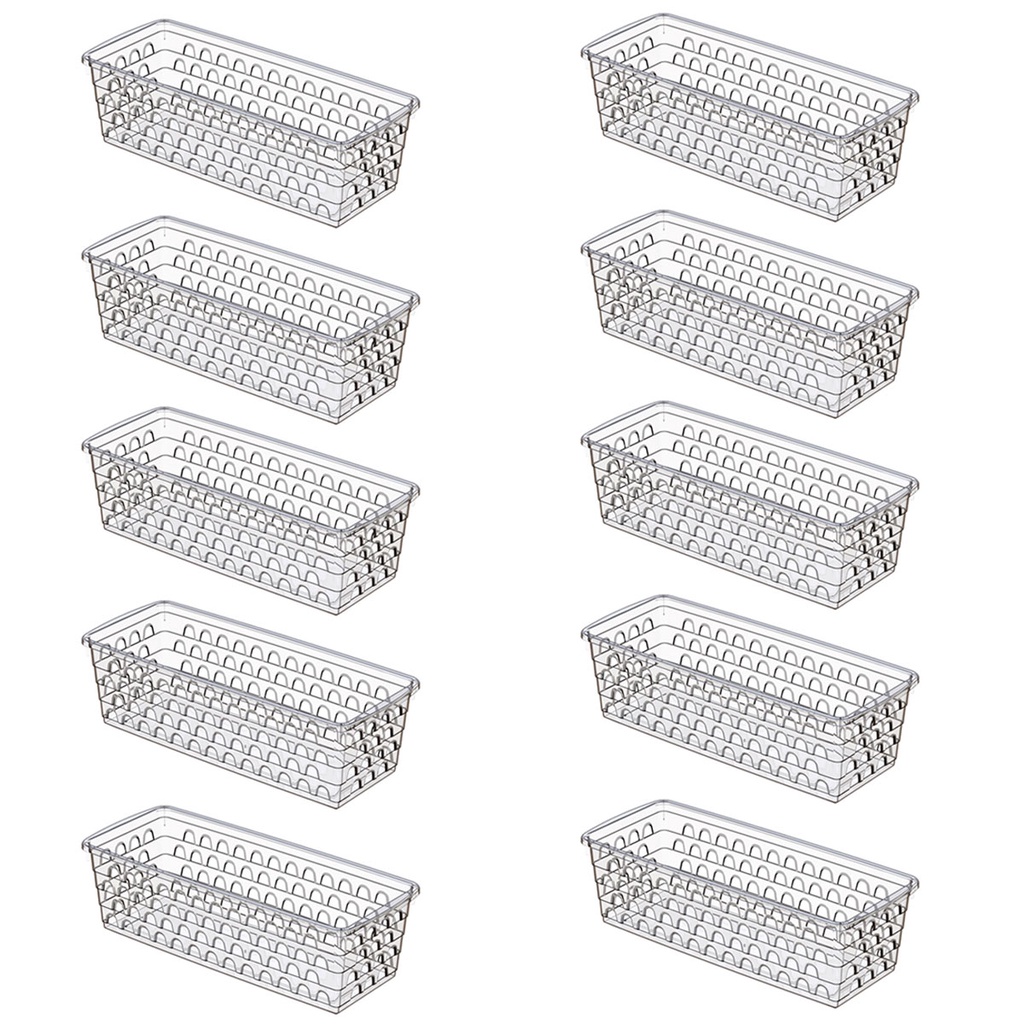 Cesto Organizador Kit 10 Peças Medio 20x15x6cm Transparente Multiuso Para Gaveta Cozinha Lavanderia