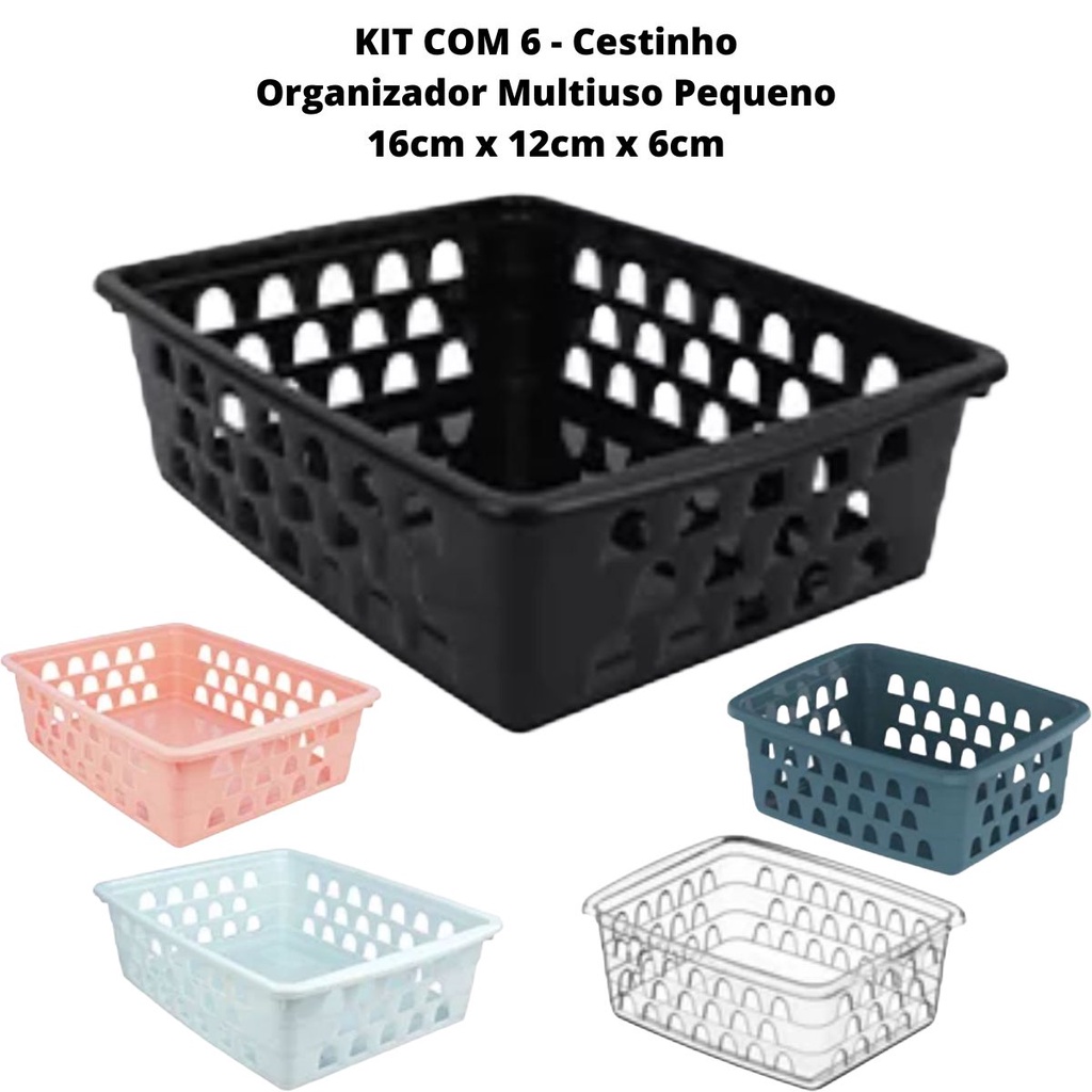 KIT COM 6 - Cesto Cestinho Organizador Multiuso Pequeno 16cm x 12cm x 6cm com 6 Unidades Escritório Quarto Sala Cozinha Lavanderia