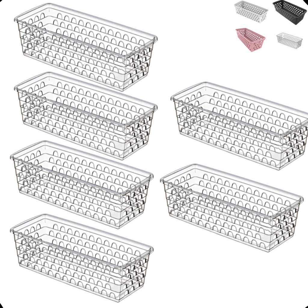 kit 6 Cesto Organizador Transparente Comprido Retangular Uninjet Multiuso Cozinha Doméstico Organizador De Objetos Uninjet Plástico