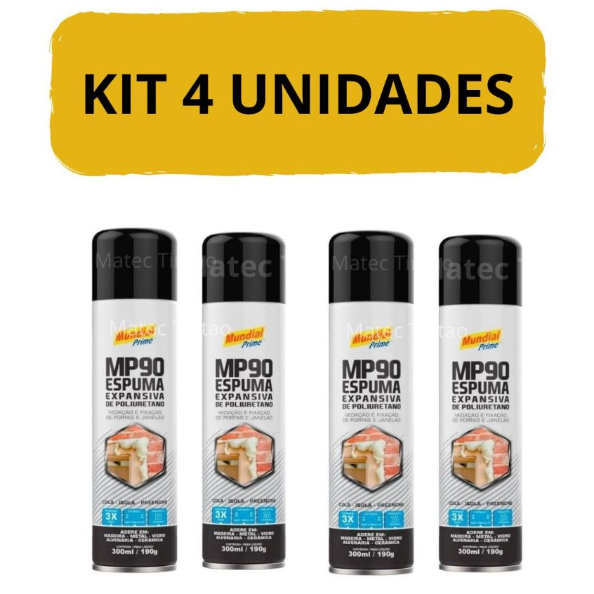 KIT 04 Espuma Expansiva Universal Obras Porta Janela Uso Geral 300ml MUNDIAL PRIME