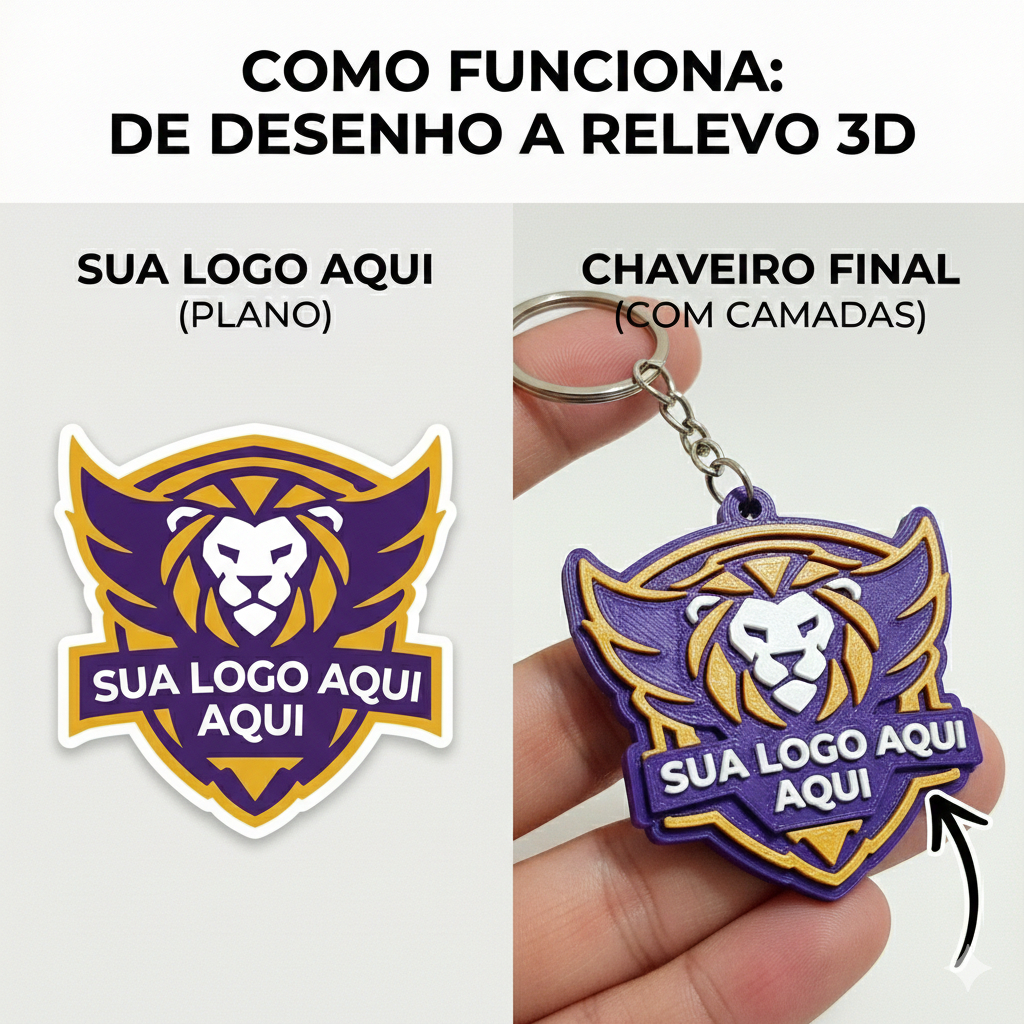 Chaveiro Personalizado Impressão 3D - Seu Nome, Logo ou Formato Especial - Brinde Exclusivo - Kit 10, 30 ou 50 Unidades