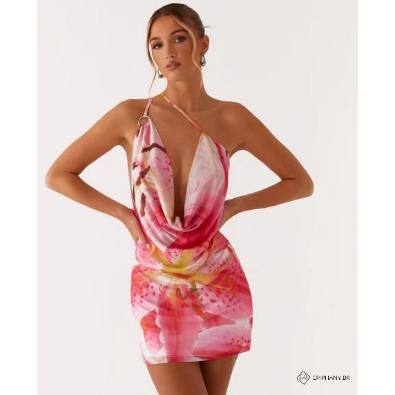 Vestido Feminino Epiphany Com Corte Solto E Elegante Estampa Floral/Mini Bodycon Sem Mangas Decote Em V Sólido