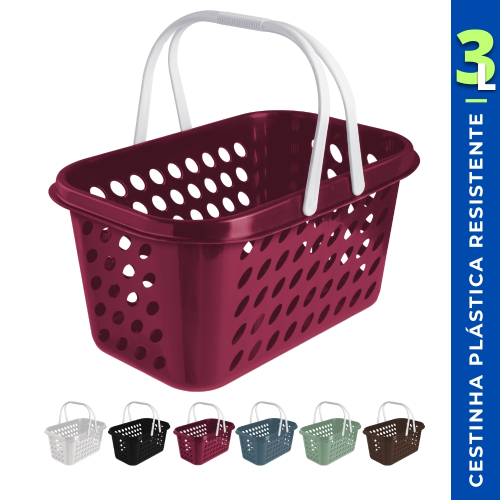 Cesta Cestinha Plástica Supermercado Compras 3L c/ Alça Resistente Leve Mulituso Portátil