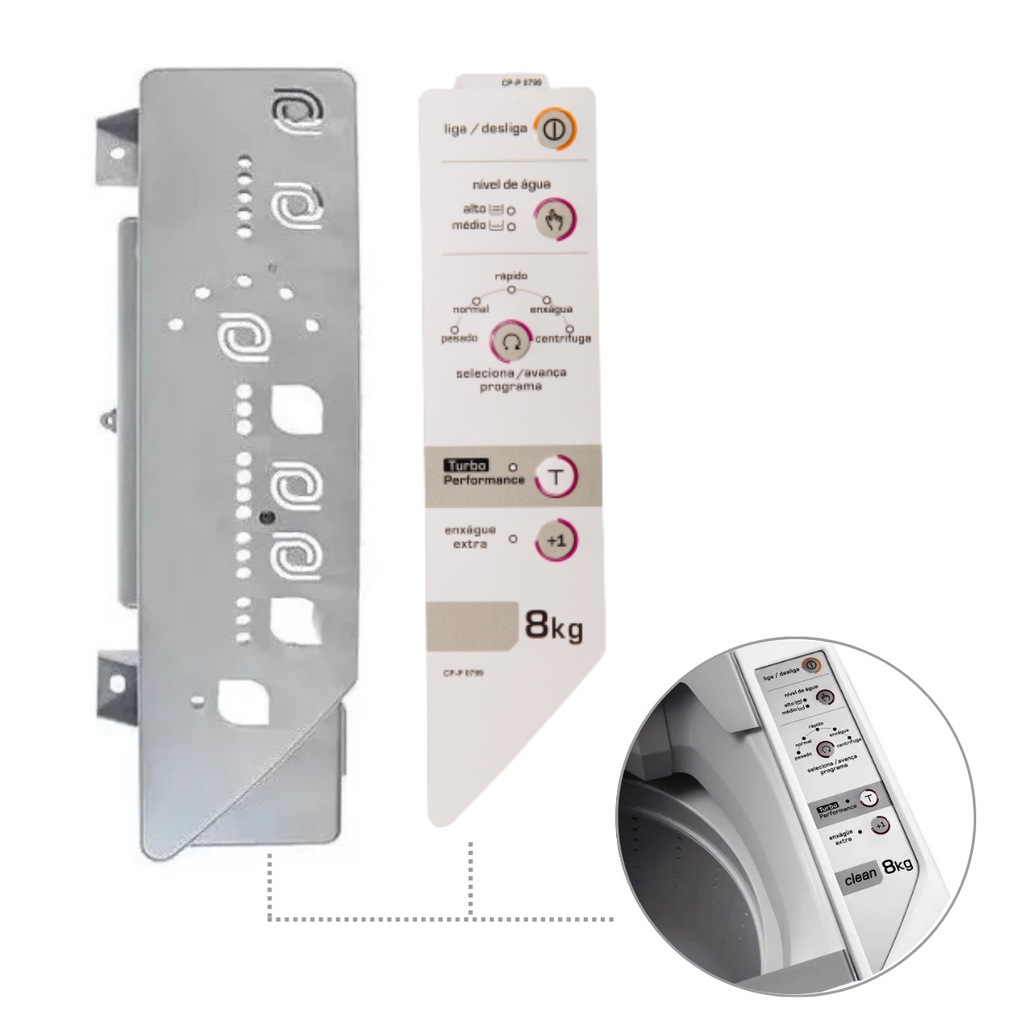 Adesivo e Painel Máquina Lavar Roupa Brastemp Clean 8kg Bwc08a