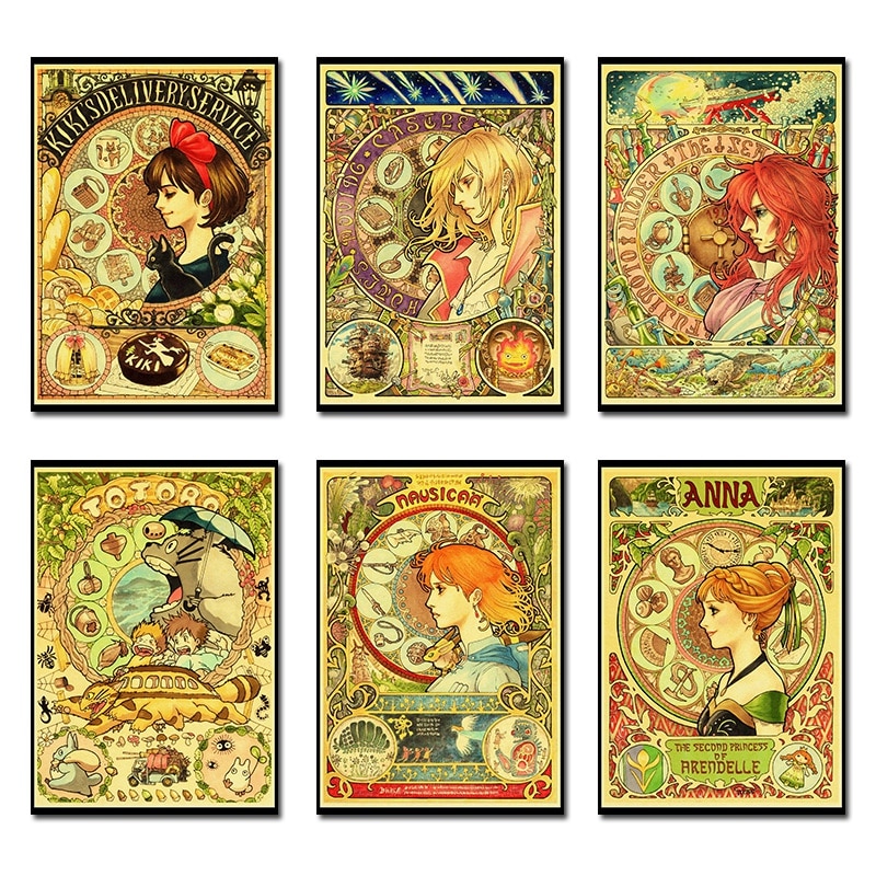 Desenho Animado Anime Hayao Miyazaki Totoro Cartaz Espirituoso Cafe Kids Home Decor Retro Kraft Parede De