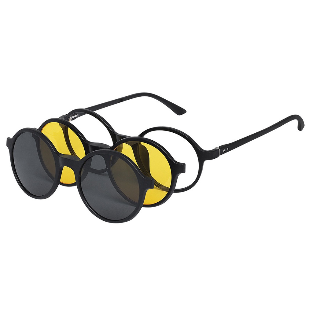 Óculos Masculino Redondo Clipon Preto Polarizado Drive Night Grau e Sol 3 em 1 Isabela Dias 2280