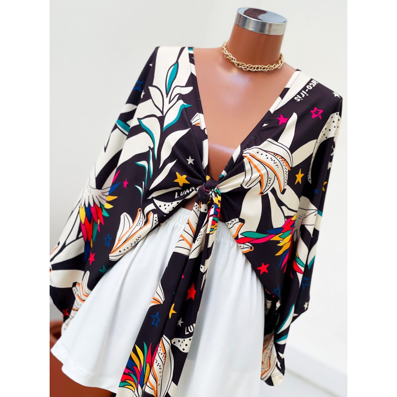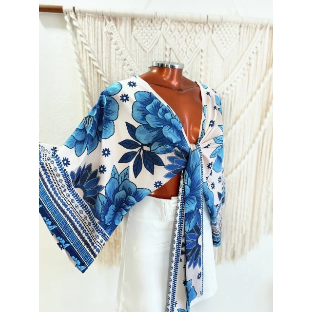 Cropped manga Morcego Estampado Moda Primavera verão inspiração farm