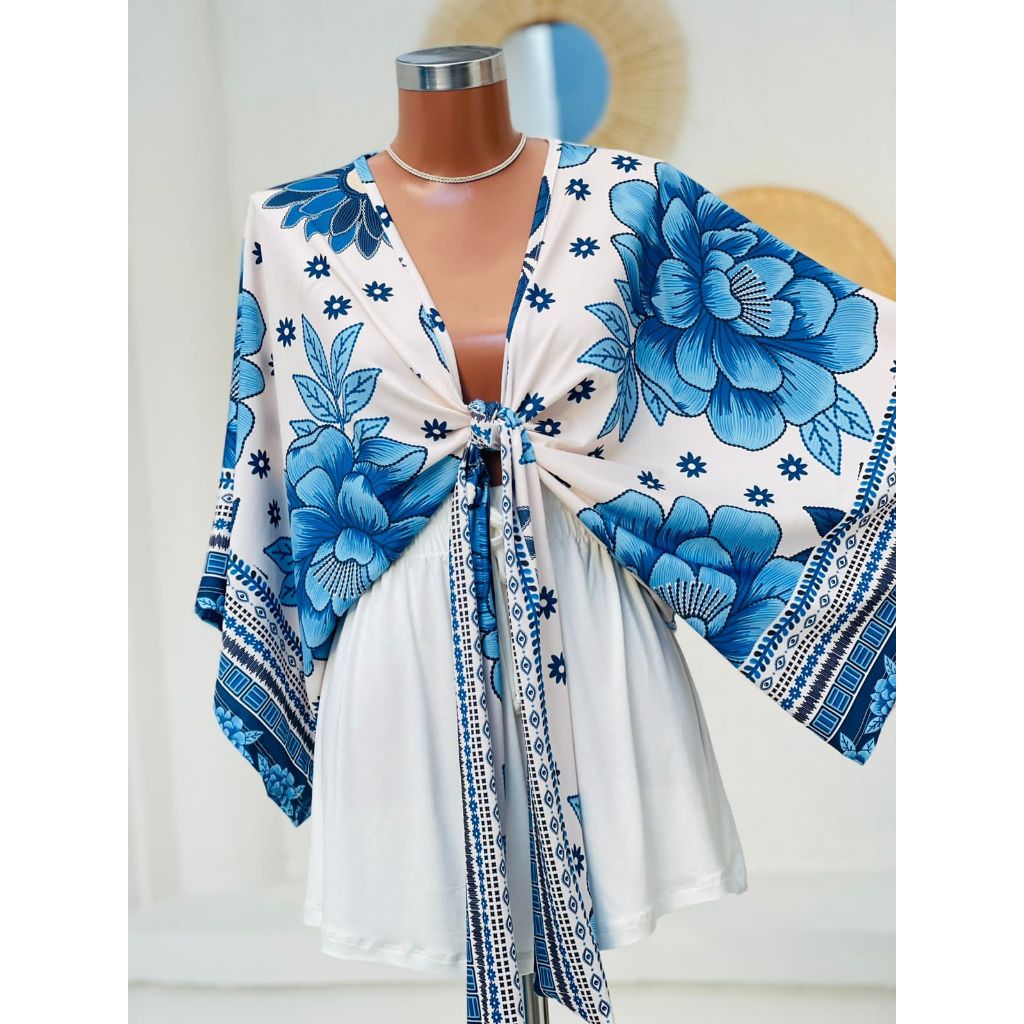 Cropped blusa morcego amarração manga larga japonesa nozinho inspiração farm blogueira tendência