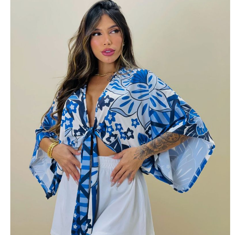 Cropped manga Morcego Estampado Moda Primavera verão inspiração farm