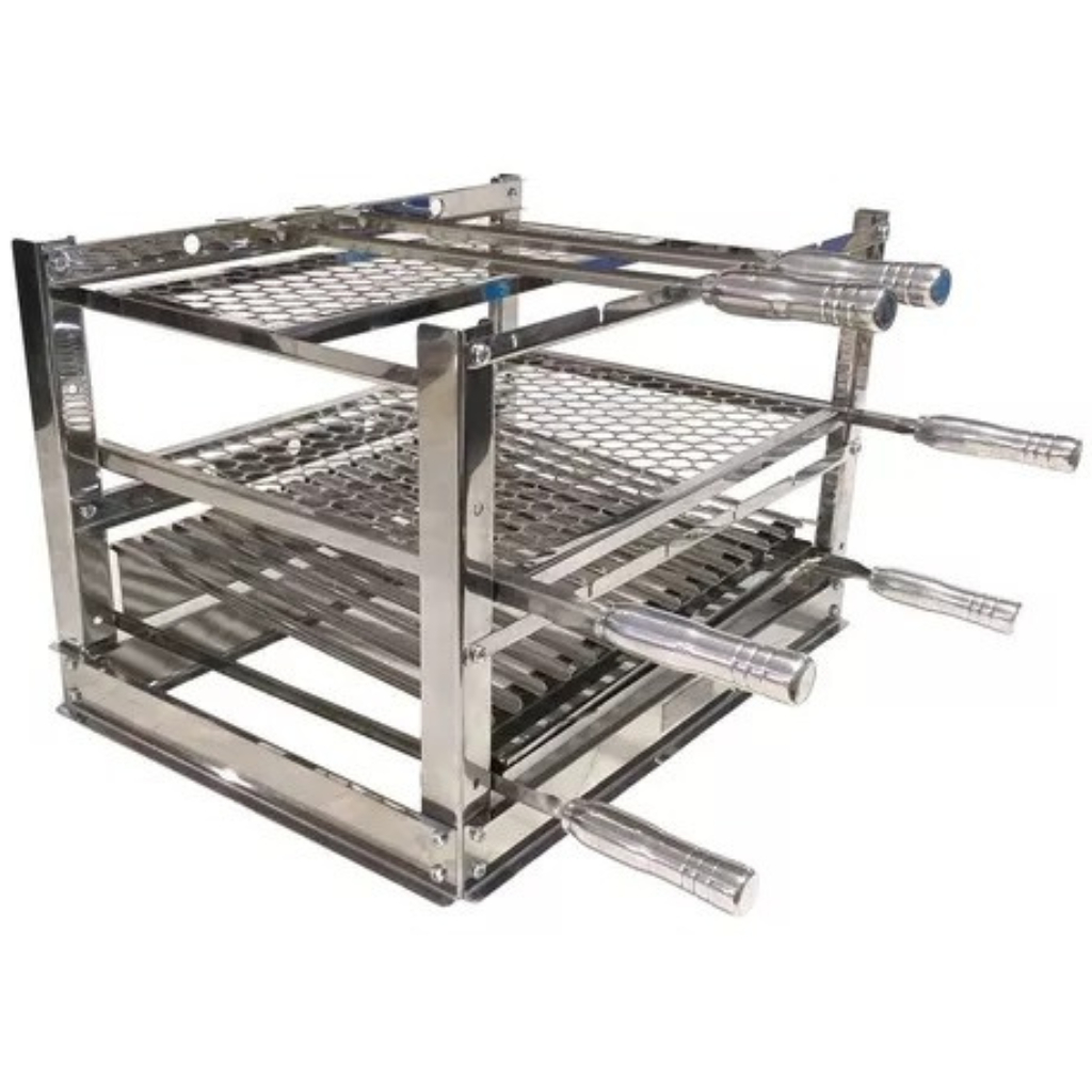 Suporte Grill Para Churrasqueira e Bancada Gourmet Aço Inox Suspenso Com 6 Peças Reforçada