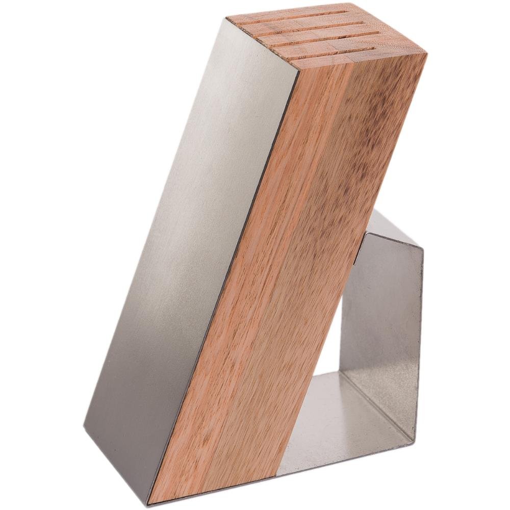 Cepo de Madeira e Aço Inox para Bancada Kort Suporte para Facas e Tesoura Domama
