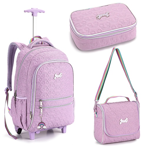 Kit Mochila de Rodinha 4 Rodas Carrinho Escolar Lancheira Estojo Teen Kawai Colorida Feminina