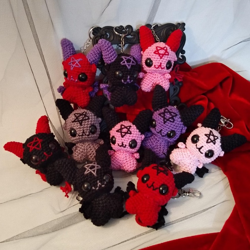 Chaveirão Baphomet, em Amigurumi, escolha entre várias cores