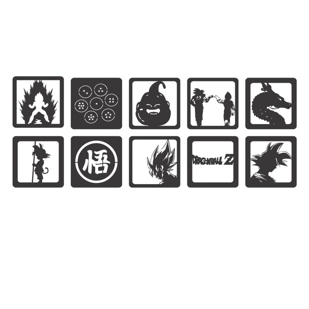 Quadro Decorativo Kit Dragonball MDF Vazado 3mm Preto Fosco