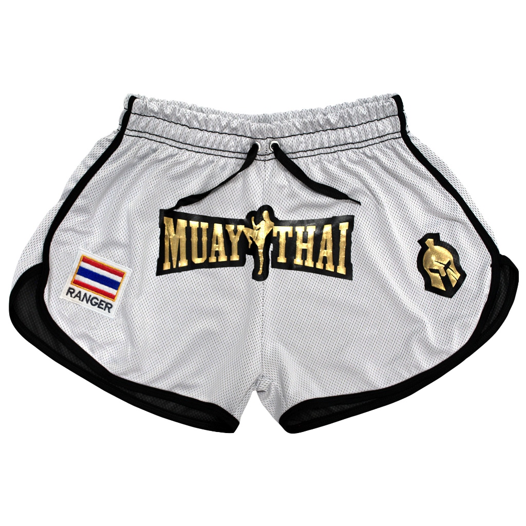 Short Muay Thai Calção Branco Dry Fit Ranger Patch Bordado Unissex