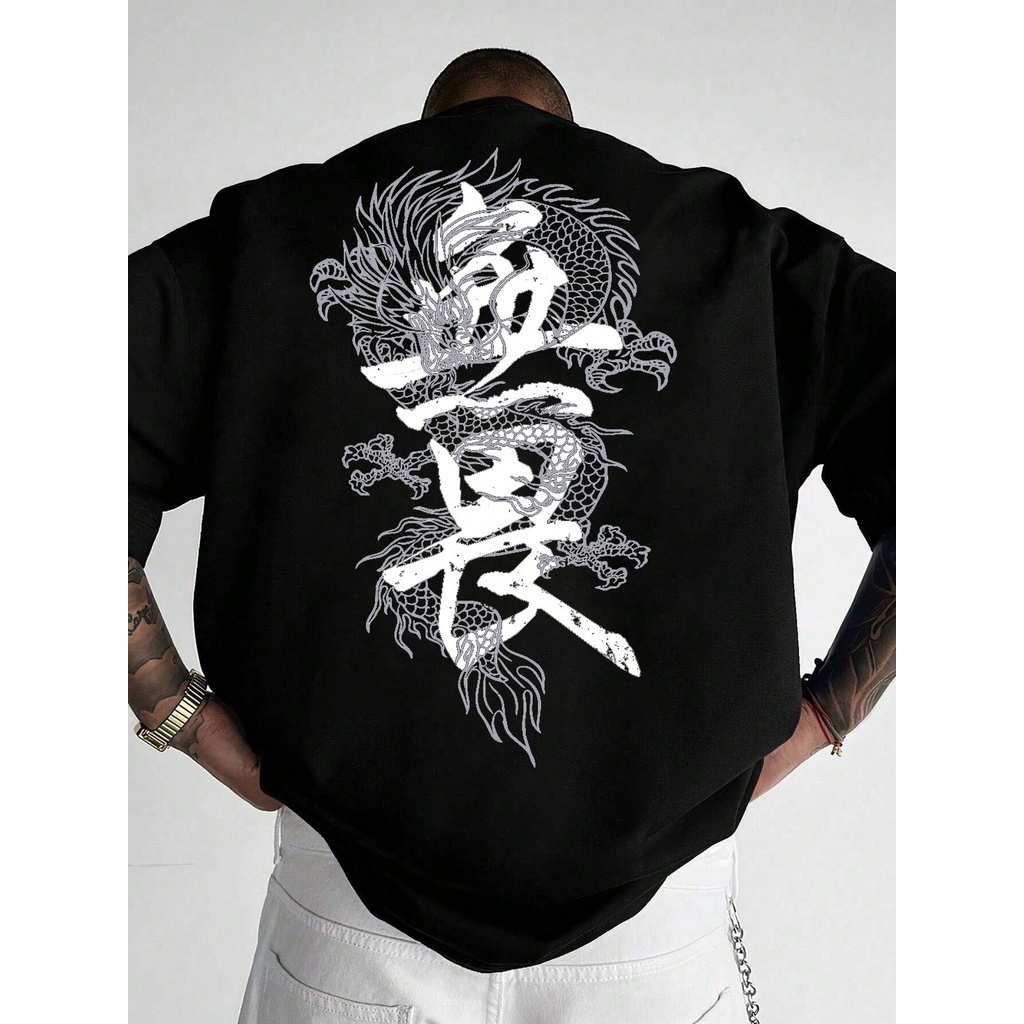 Camiseta Masculina Dragão Kanji Unissex Algodão Streetwear Premium Plus Size - Envio Imediato