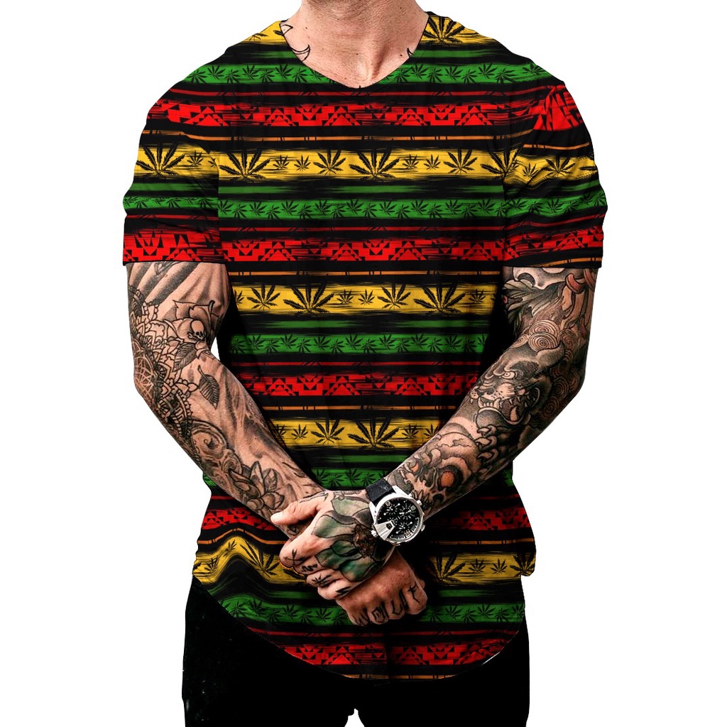 Camiseta Blusa Alongada Moda Masculinas Etnica Jamaica Listrada Ervinhas Reggae
