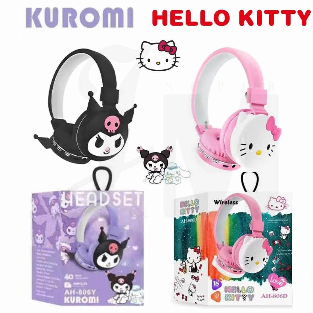 Fones De Ouvido Originais Sanrio Sem Fio Bluetooth Dobráveis Para Crianças HIFI Sound Stereo Estéreo Com Microfone Anime Cartoon Kids Gifts KUROMI HELLO KITTY