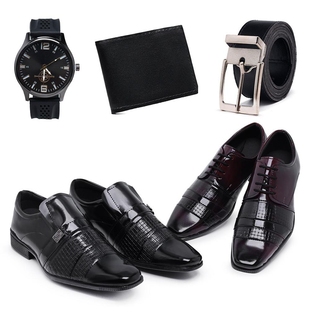 Kit 2 Pares Sapato Social Masculino Verniz Moda Evangélica Class Stylo Igreja Carteira E Cinto Promoção