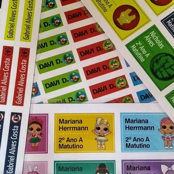 Kit 250 etiquetas adesivo escolar prova d'água personalizada com recorte