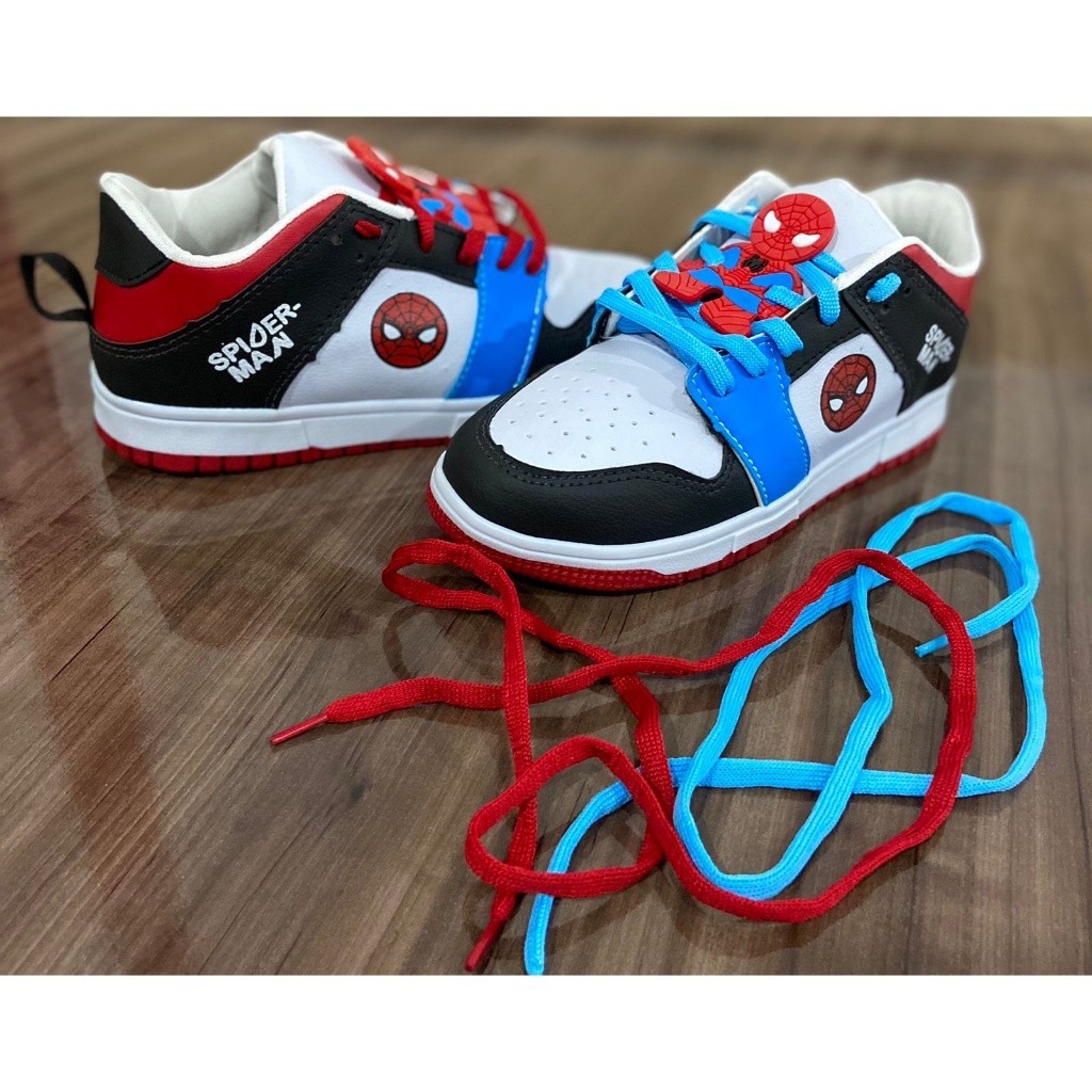 Tenis Infantil do Homem Aranha + 2 Cadarços (Azul e Vermelho) do 26 ao 33 Cano Baixo Lançamento Menino Garoto Criança