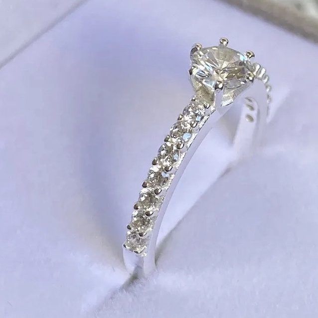 Anel de noivado/Solitário cravejado - Prata 925 legitima