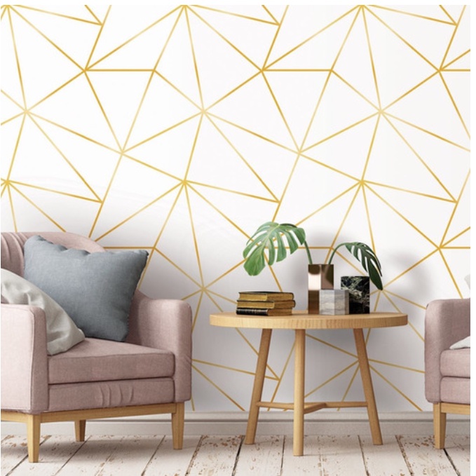 Papel De Parede LUXO Autocolante 5metros x 0,45cm Zara Rose Gold Infantil Geométrico Para Decoração De Quarto Sala