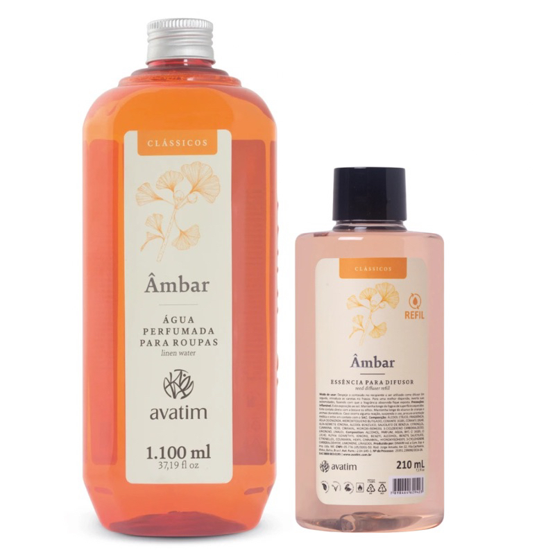 Kit Refil para Difusor + Água Perfumada para Roupas Âmbar 1100ml Avatim