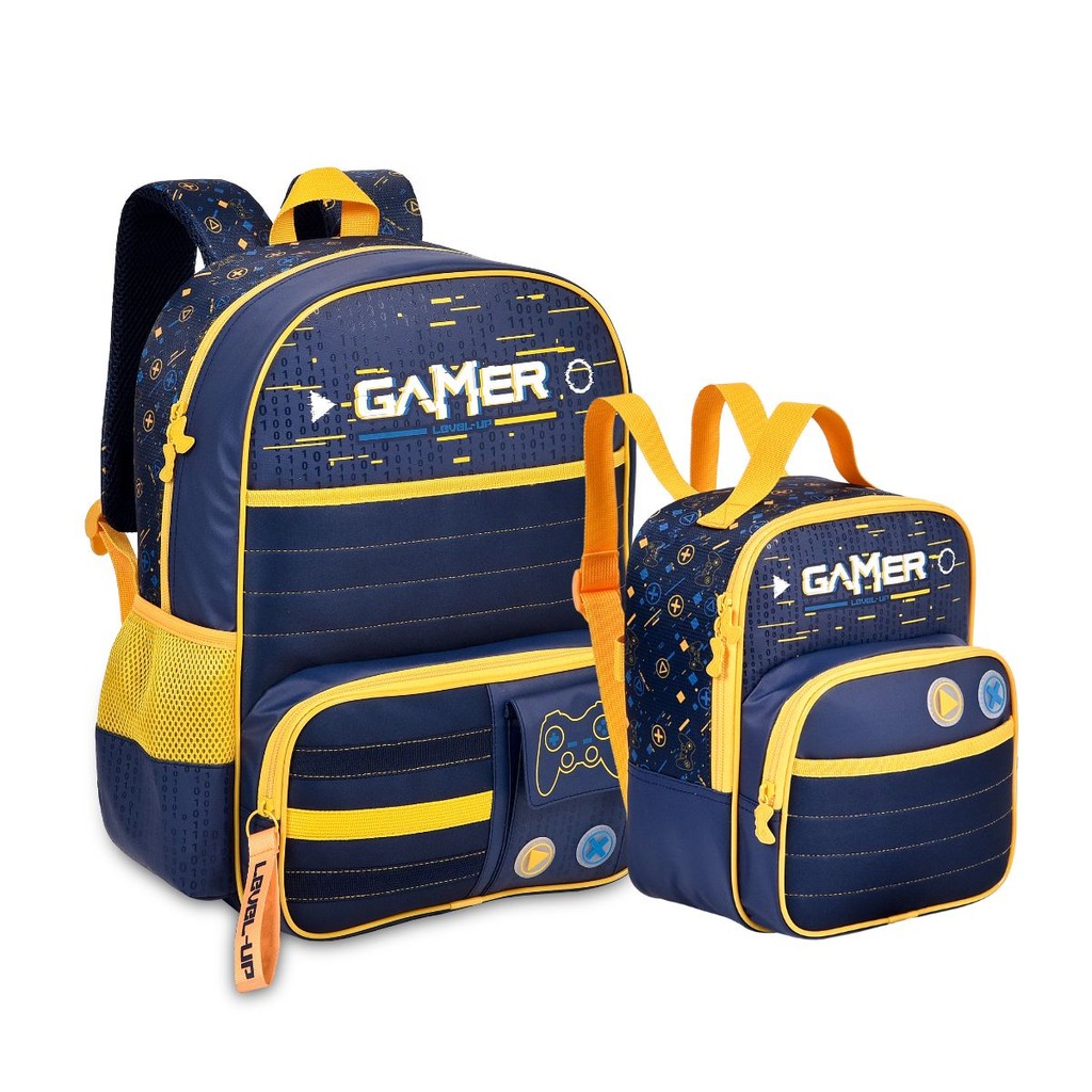 Kit Mochila de Costas Gamer C/ Lancheira Térmica Vídeo Game Original - AZUL - Clio