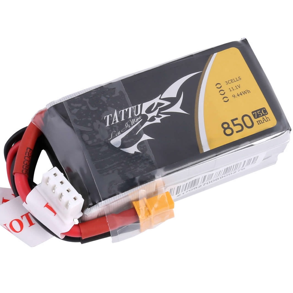 Bateria Lipo 11.1v 3s 850mah 75c Tattu Gens Ace p/ Aeromodelo Drone Racer Pylon