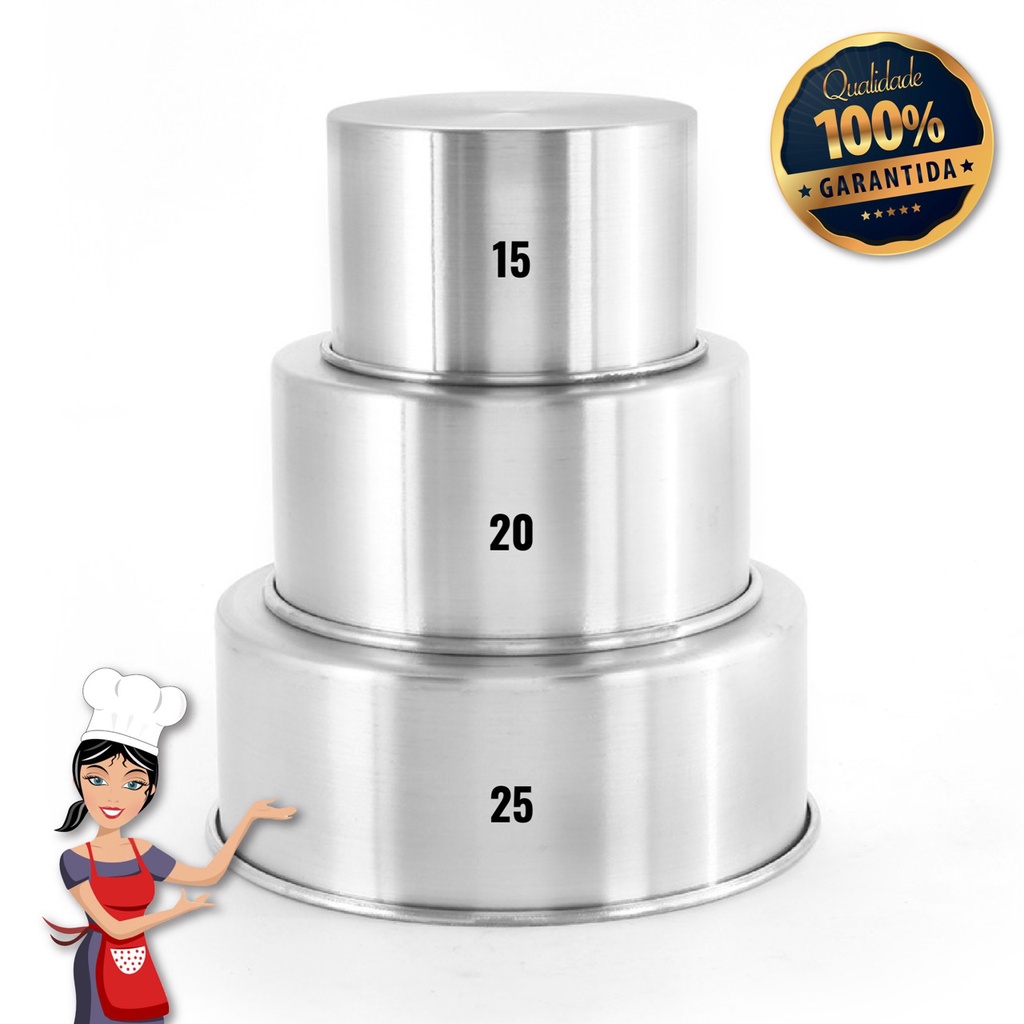KIT Forma Assadeira Bolo REDONDA ALTA 15 / 20 / 25 x 10 cm Aluminio - V3