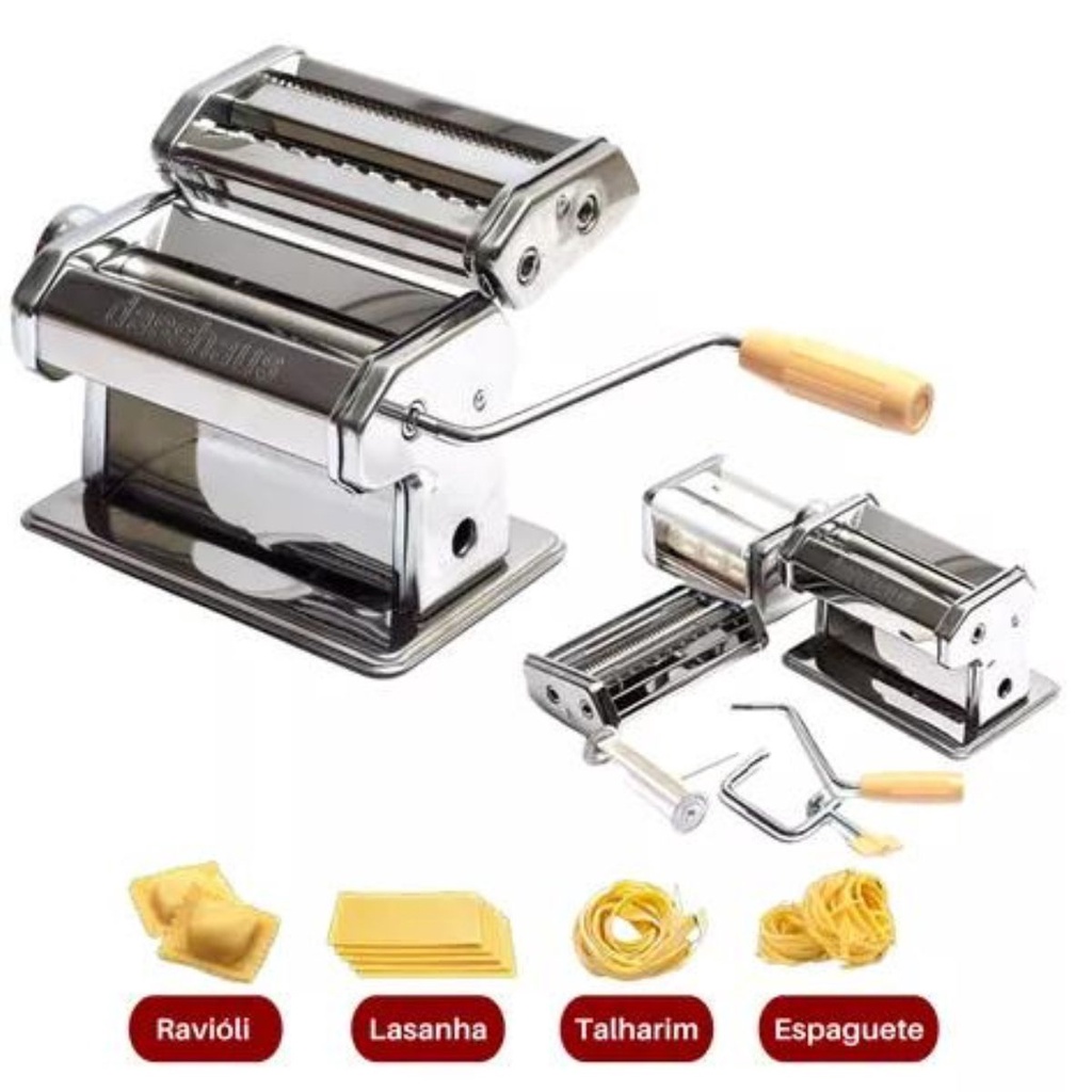 MÁQUINA DE FAZER MACARRÃO INOX COM MOLDES PARA RAVIÓLI E TALHARIM FAZ PASTEL LASANHA