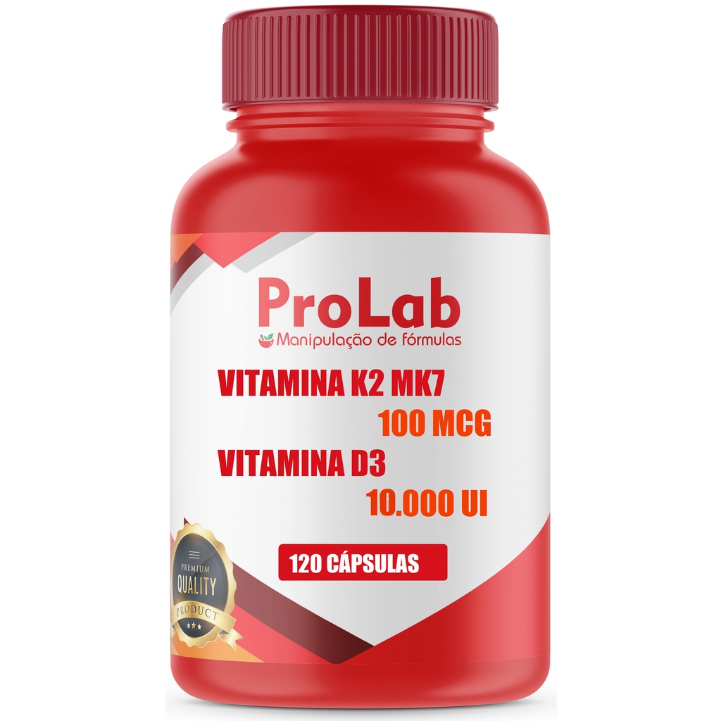 Vitamina K2 Mk7 100mcg + Vitamina D3 10000ui 120 Cápsulas