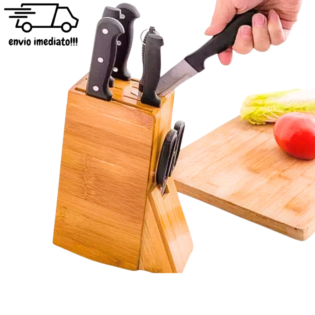 Faqueiro Organizador Bambu Porta Facas Tesoura Suporte Cepo