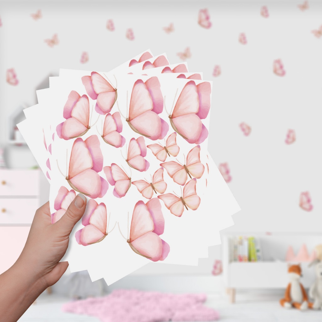 120 Adesivos De Parede Autocolante Borboletas Aquarela Quarto Menina Bebe