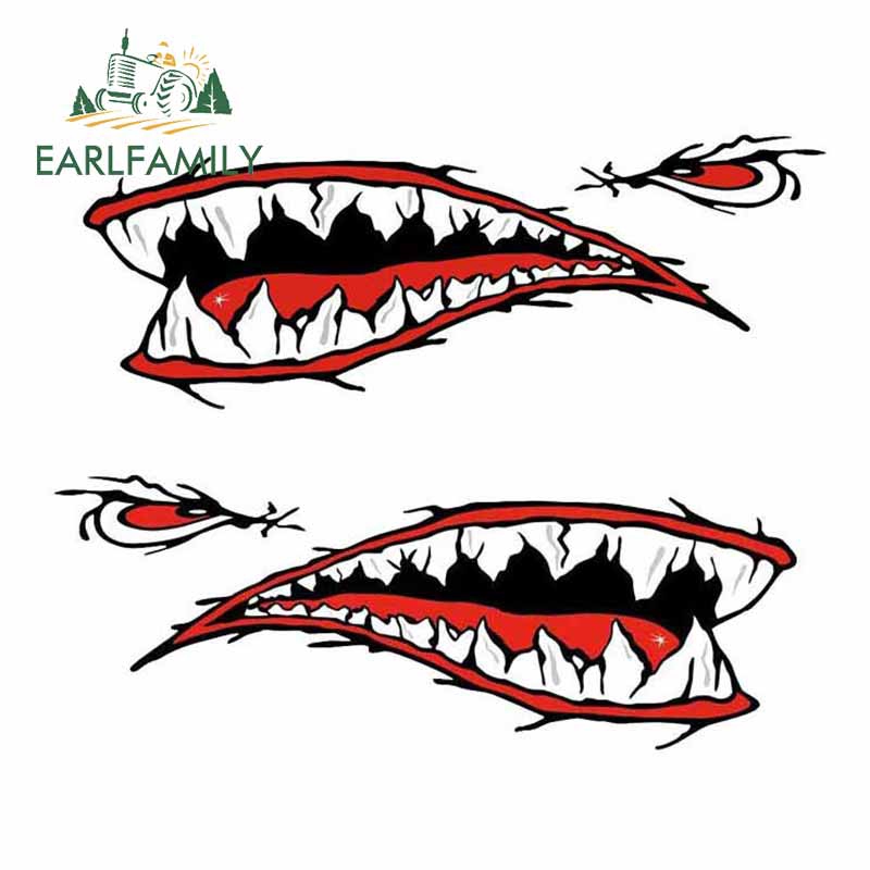 EARLFAMILY 13cm x 4.8cm Dos Desenhos Animados Aeroporto Tubarão Avião Lutador Adesivos De Carro Criativo Caravana Pranch