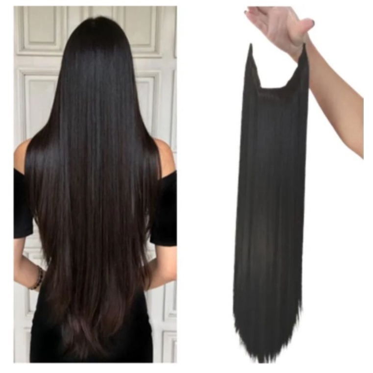 Aplique tiara invisível preto liso 70cm idêntico humano.