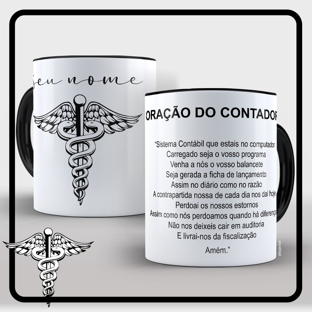Caneca Personalizada Porcelana 325ml - Profissão Contabilidade Oração do Contador Caduceu