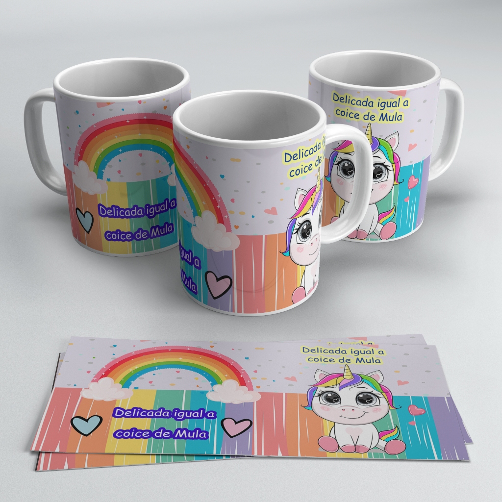 Caneca Divertida Personalizada Xicara de Porcelana - Unicornios Amor Amizade Humor
