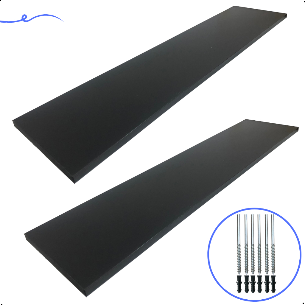 2 PrateleiraS 100x15 Com Suporte Invisivel Flutuante Mdf Preto Organização Para Cozinha Banheiro Quarto Dormitorio Sala Lavabo Area Gourmet Escritorio Casa Lavanderia Parede Decorativa Tabua 100cm Madeira Flutuante 100 Cm x 15 Cm Preta