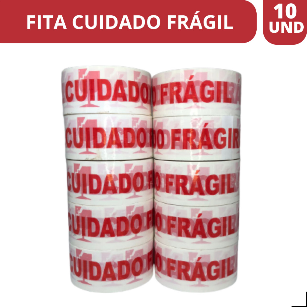 Fita Adesiva Cuidado Fragil 48mm X 100 Metros Kit Com 10 Rolos