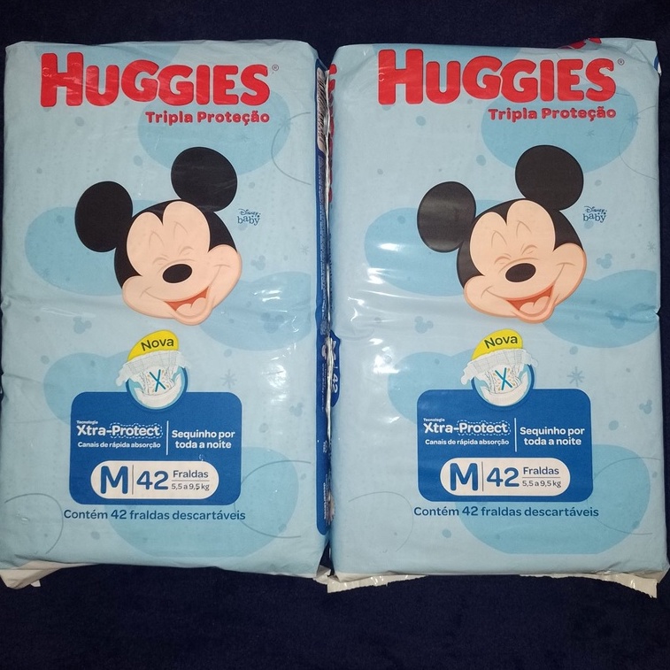 Kit 2 Fralda Huggies Tripla Proteção Tamanho M Pacote Mega com 42 Unidades cada